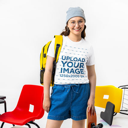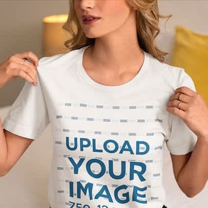 Comfort Colors Mockup Featuring a Woman Biting Her Pocket T-Shirt in a Studio