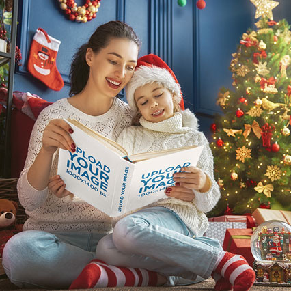 Book Mockup Featuring a Woman Reading an Open Book in Her Bedroom