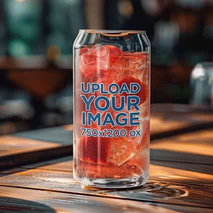 Can Mockup Featuring Ice in a Tropical Setting