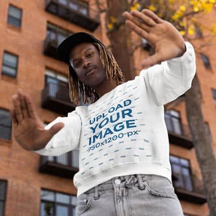 Oversized Tee Mockup of a Serious and Tattooed Man Posing Against the Sky